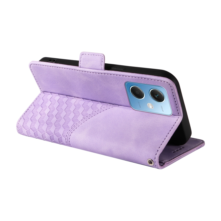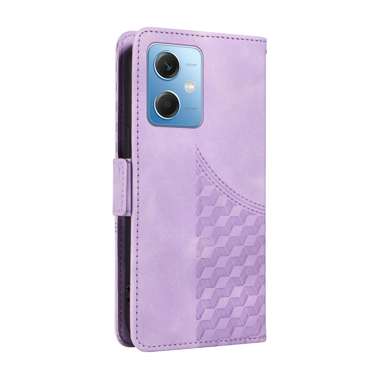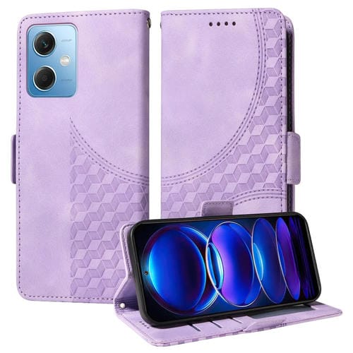 Funda de Cuero con Rombos y Estrellas En Relieve para Redmi Note 12 5G (Morado)