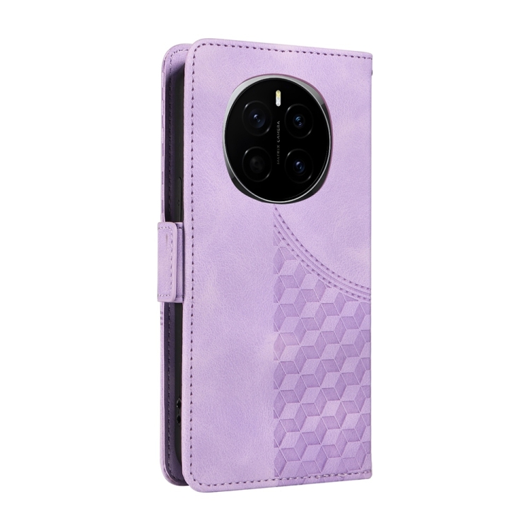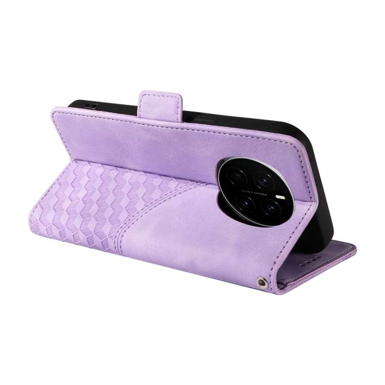 Funda de Cuero para Teléfono Honor Magic7 con Rombos y Estrellas en Relieve (Morado)