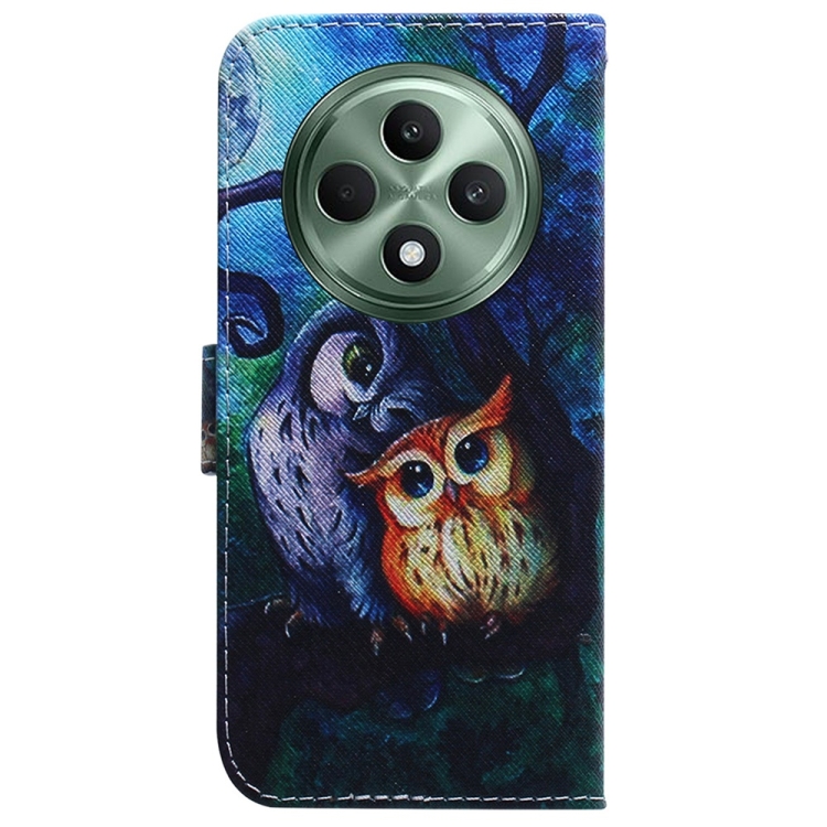 Funda de Cuero con Tapa con Dibujo Colorido para Oppo Reno12 F 5G (Búho con Pintura al Óleo)
