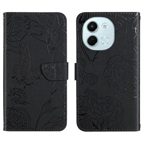 Funda de Cuero con Tapa con Relieve de Mariposa para Tecno Spark 30 5G (Negro)