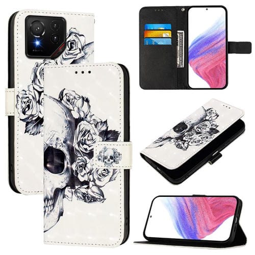 Funda de Cuero con Tapa Horizontal y Pintura 3D para Asus Rog Phone 9/9 Pro (Calavera)