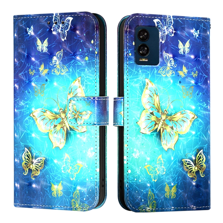 Funda de Cuero con Tapa Horizontal y Pintura 3D para Blu View Speed 5G (Mariposa Dorada)