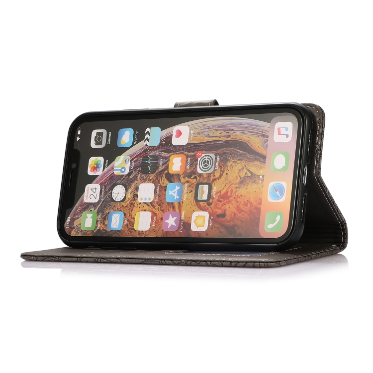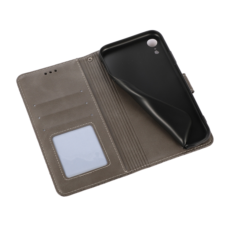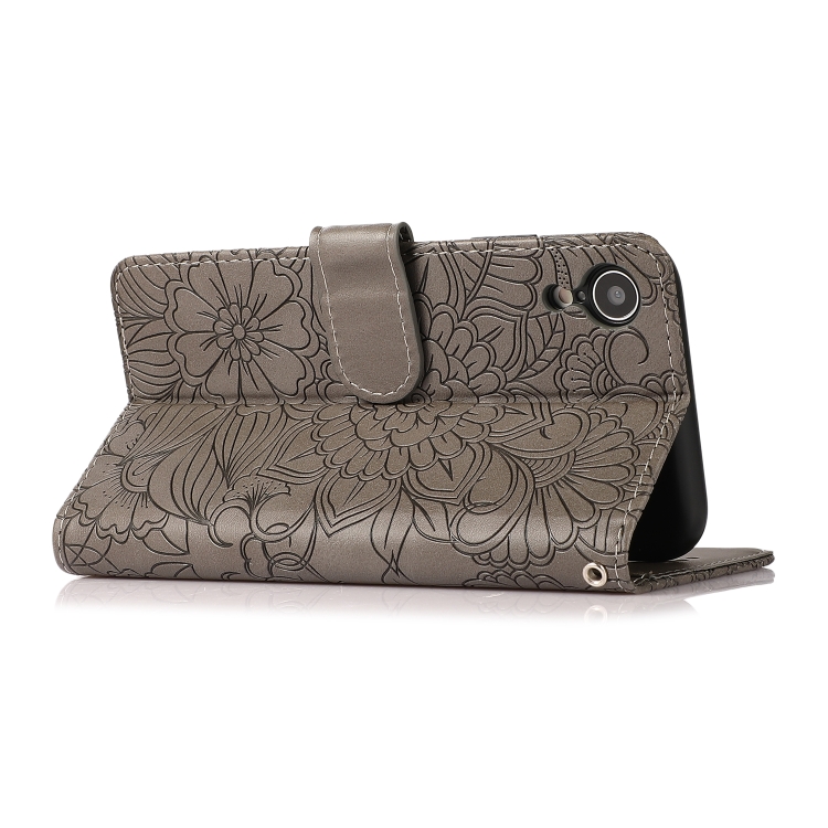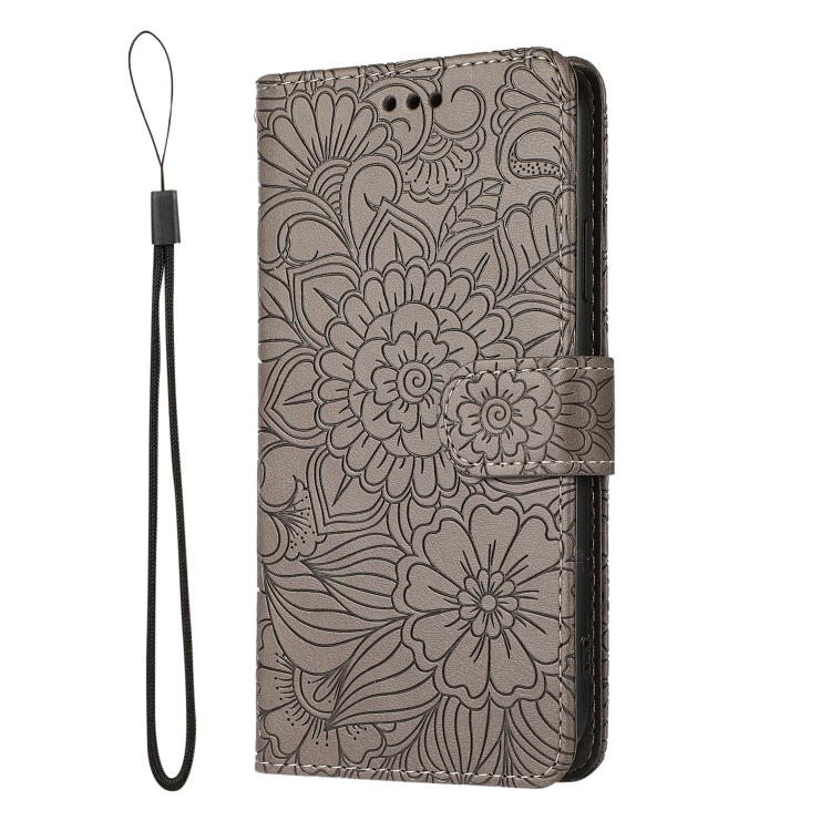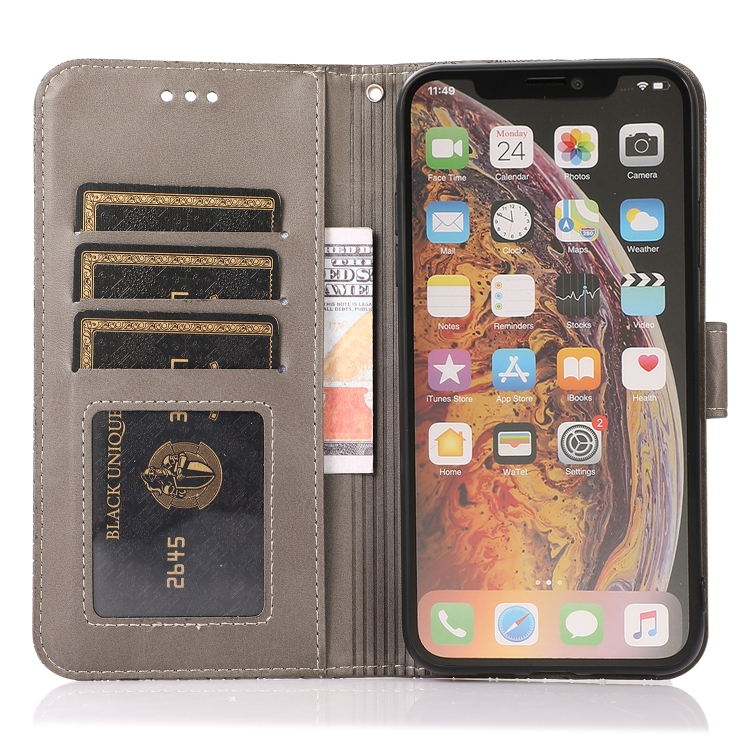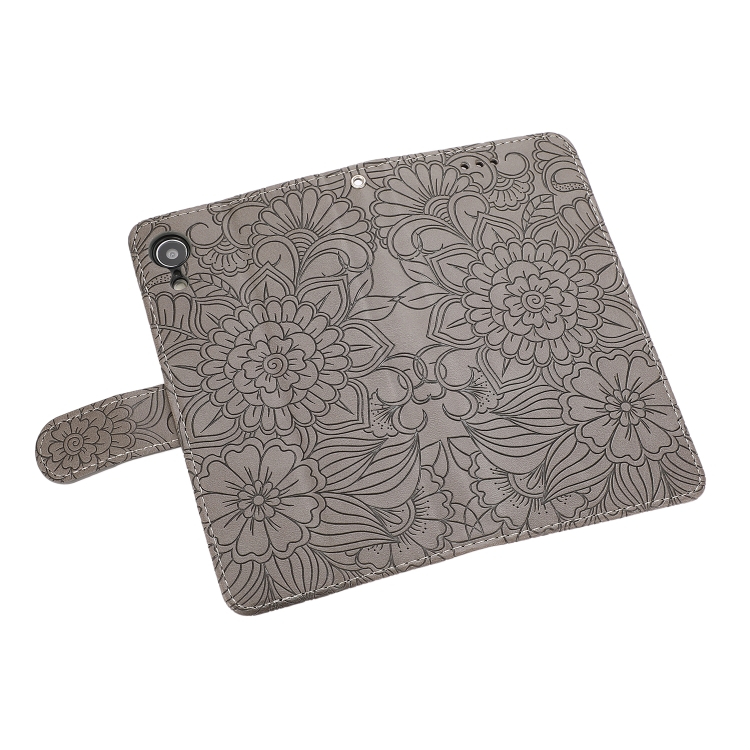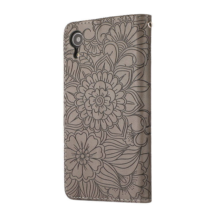 Funda de Cuero con Tapa Horizontal Girasol En Relieve para iPhone Xr con Soporte Ranuras Tarjetas Billetera y Cordón (Gris)
