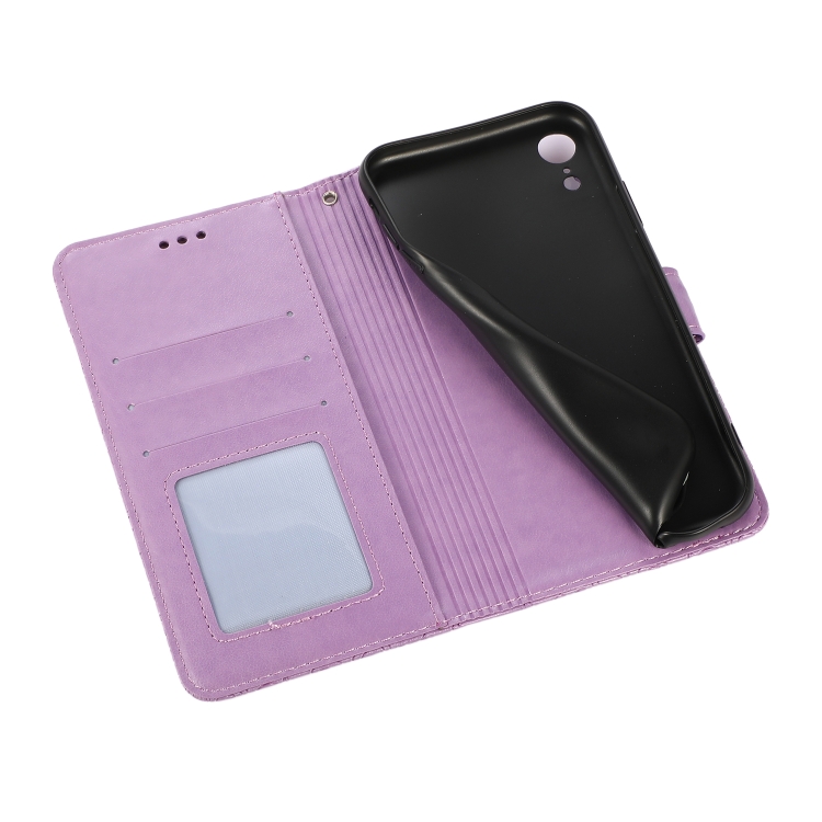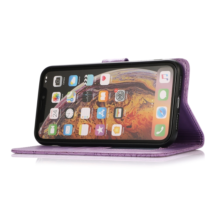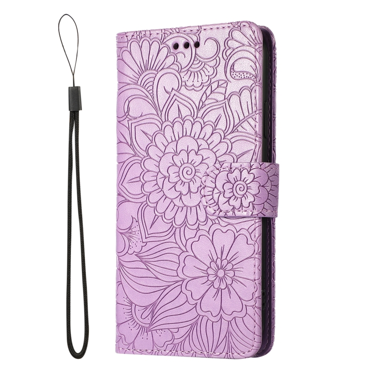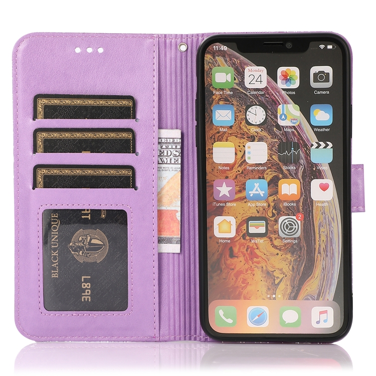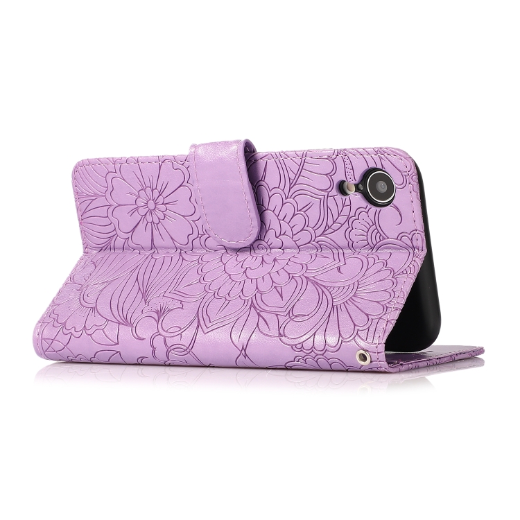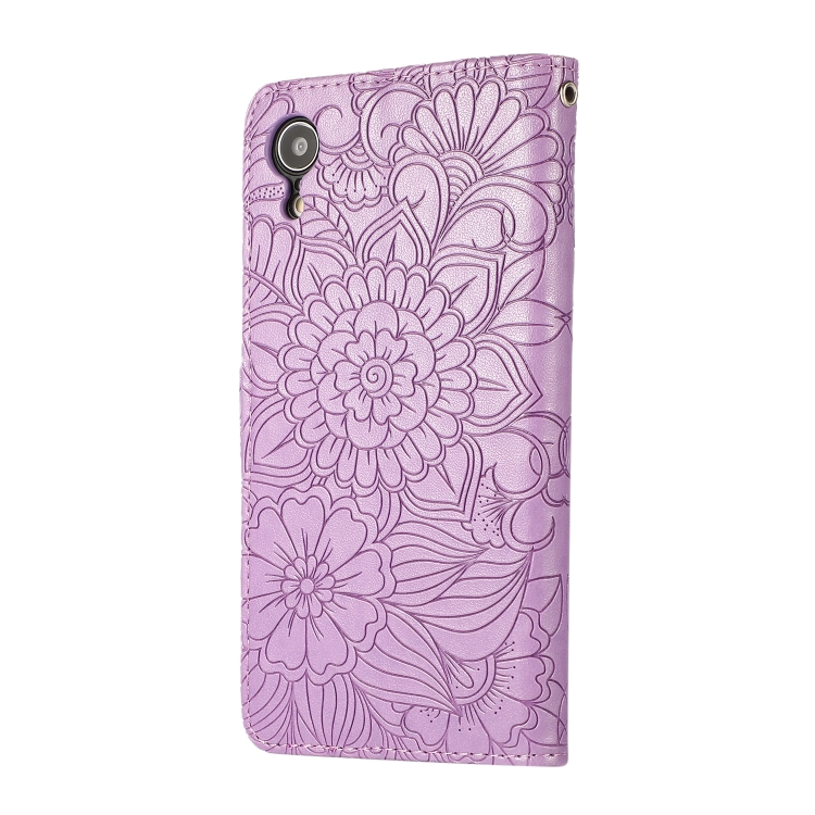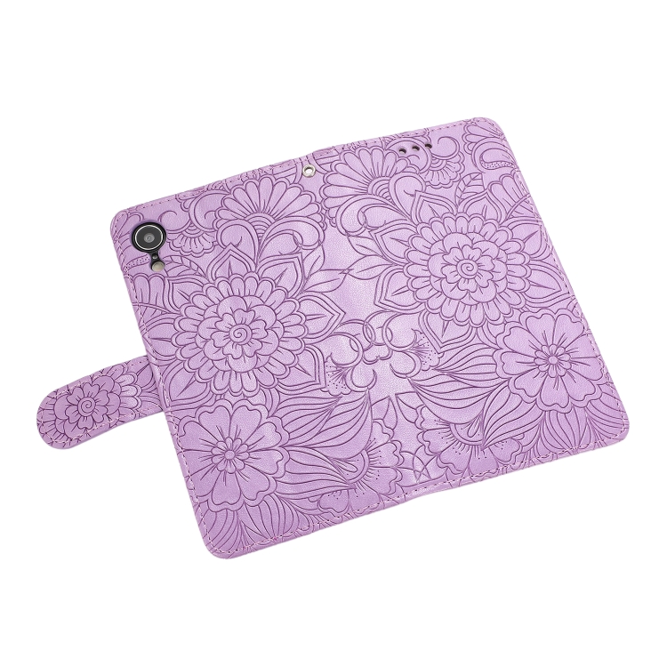 Funda de Cuero iPhone Xr Skin Feel con Tapa Horizontal Girasol En Relieve Soporte Ranuras Billetera Cordón (Púrpura)