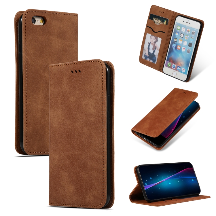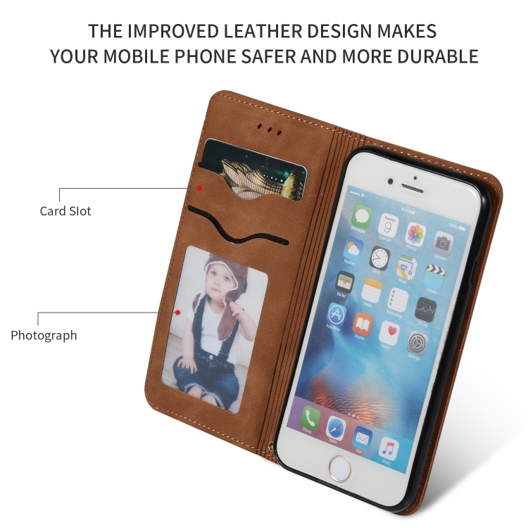 Funda de Cuero con Tapa Horizontal Magnética Retro Skin Feel Business para iPhone 6S y 6 (Marrón)