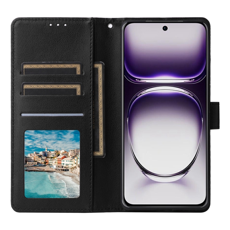 Funda de Cuero con Tapa Horizontal Multifuncional Global para Oppo Reno12 Pro 5G con Ranura para Tres Tarjetas (Negro)