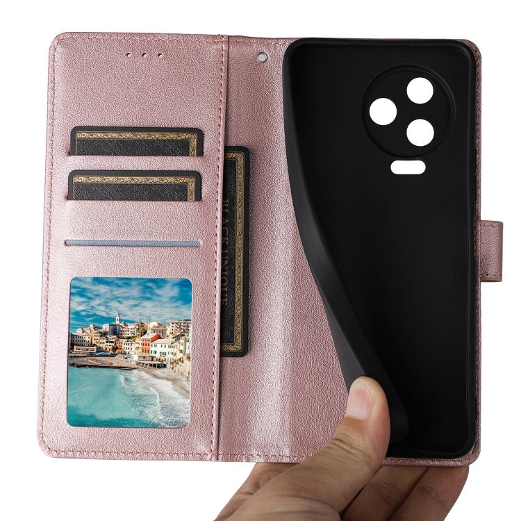Funda de Cuero con Tapa Horizontal para Infinix Note 12 (2023) con Ranura para 3 Tarjetas (Oro Rosa)