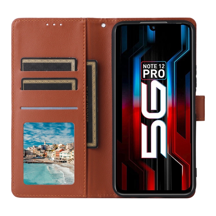Funda de Cuero con Tapa Horizontal para Infinix Note 12 Pro 5G con Ranura para Tres Tarjetas (Marrón)