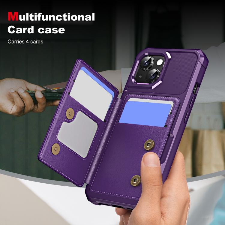 Funda para Teléfono de Cuero con Tapa Horizontal iPhone 14 Plus Tarjetero (Morado)