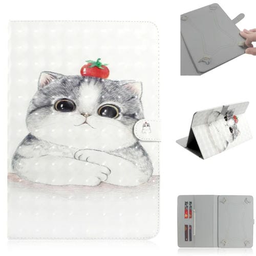 Funda Cuero Universal Tablet 7 Pulgadas con Tapa Horizontal Dibujo 3D Soporte Ranura Tarjeta Billetera (Cute Cat)