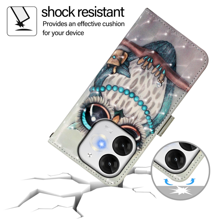 Funda de Cuero con Tapa Horizontal y Pintura 3D para Teléfono Itel A80 4G (Búho Gris)