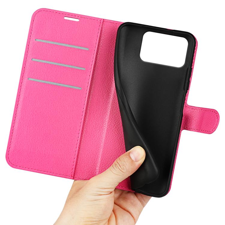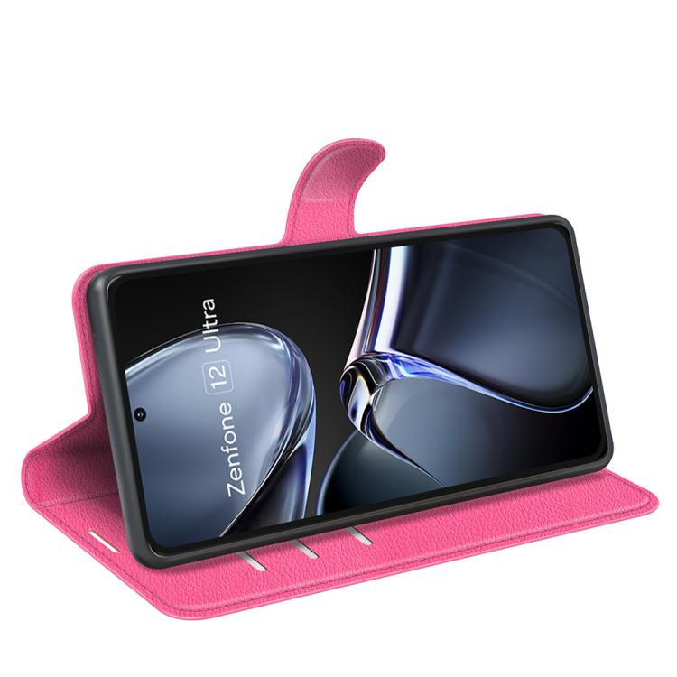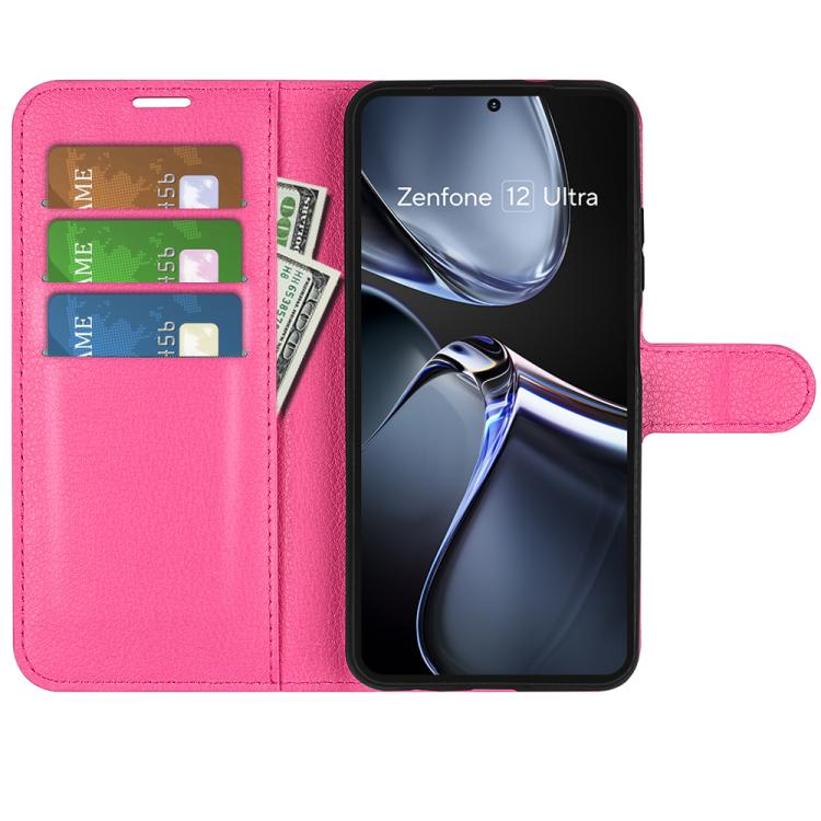 Funda de Cuero con Tapa Horizontal y Textura de Lichi para Asus Zenfone 12 Ultra (Rosa Rojo)