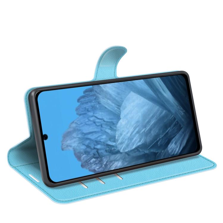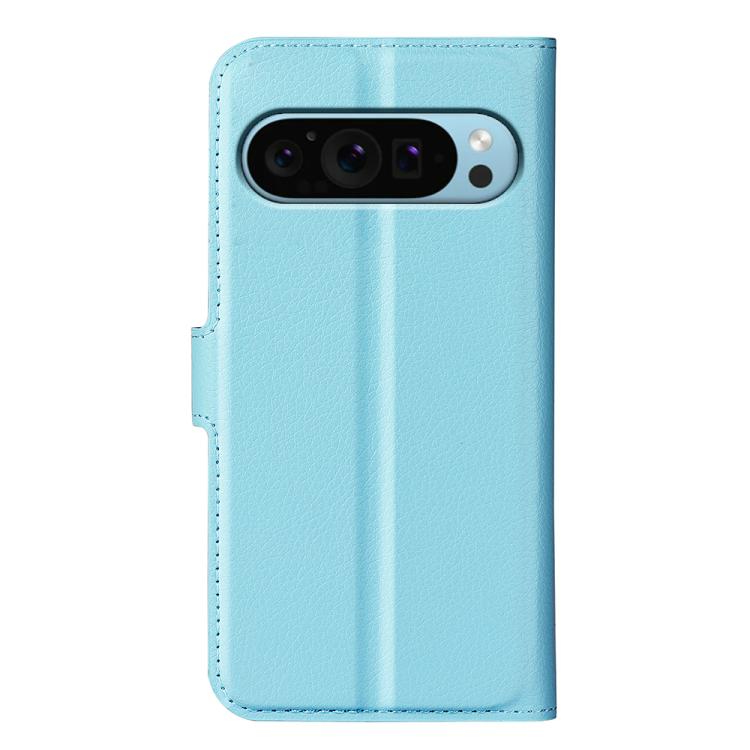 Funda de Cuero con Tapa Horizontal y Textura de Lichi para Google Pixel 9/9 Pro con Soporte (Azul)
