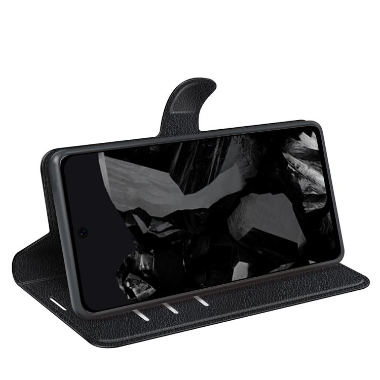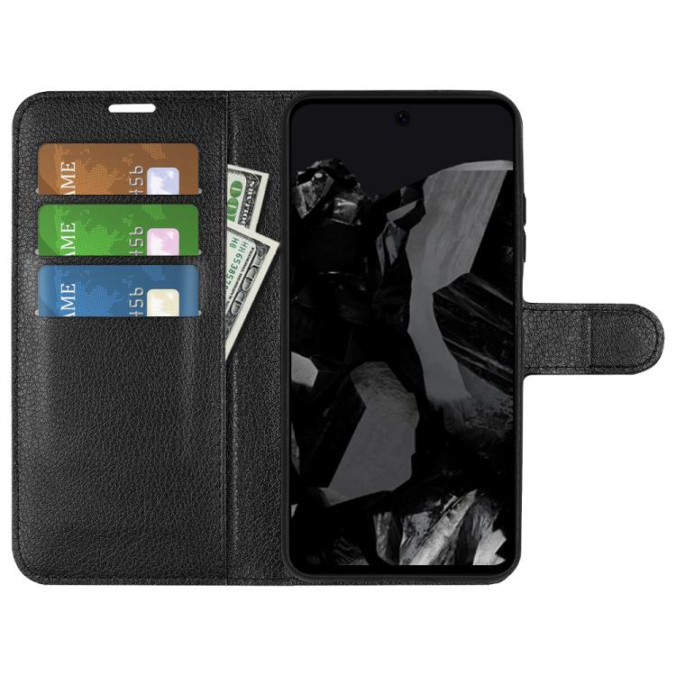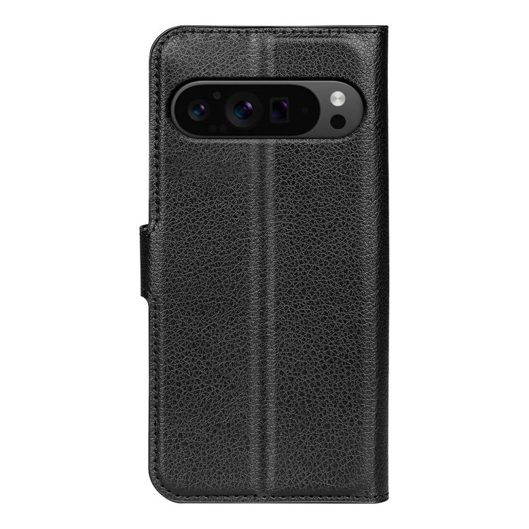 Funda de Cuero con Tapa Horizontal y Textura de Lichi para Google Pixel 9 Pro XL con Soporte (Negro)
