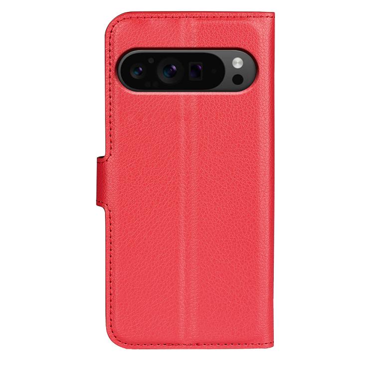 Funda de Cuero con Tapa Horizontal y Textura de Lichi para Google Pixel 9 Pro XL con Soporte (Rojo)