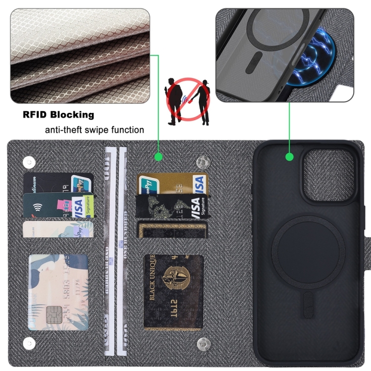 Funda de Cuero con Tapa Magnética Rfid Magsafe para iPhone 16 Pro Max Vili Gbs Series (Negra)