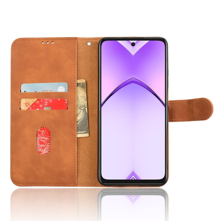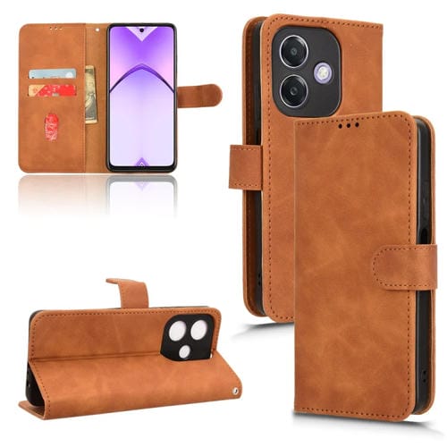 Funda de Cuero con Tapa Magnética y Tacto Agradable para Oppo A3X 5G (Marrón)