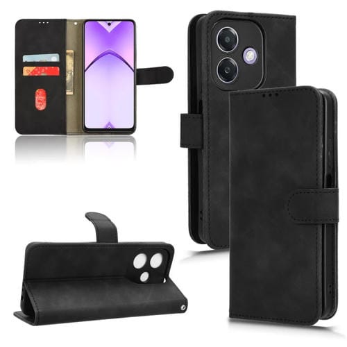 Funda de Cuero con Tapa Magnética y Tacto Agradable para Oppo A3X 5G (Negra)