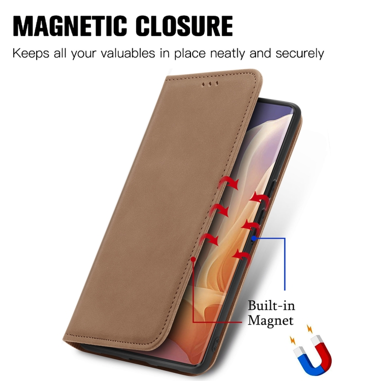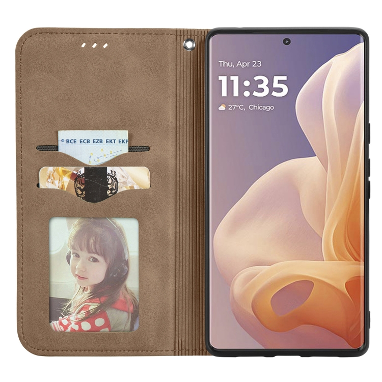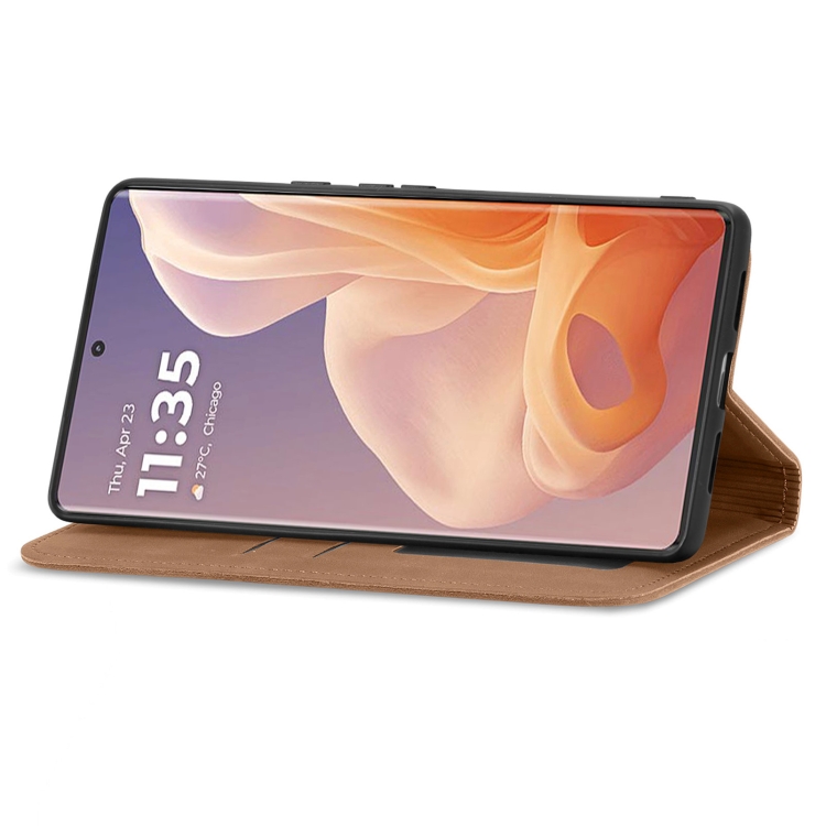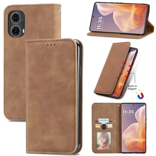 Funda de Cuero con Tapa Magnética y Tacto Retro para Motorola Moto G45 (Marrón)