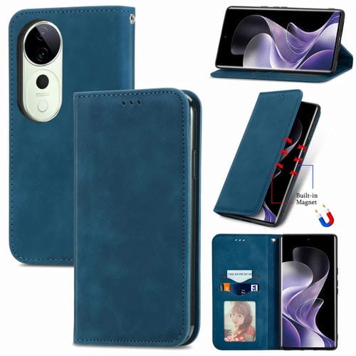 Funda de Cuero con Tapa Magnética y Tacto Retro para Vivo T3 Ultra (Azul)