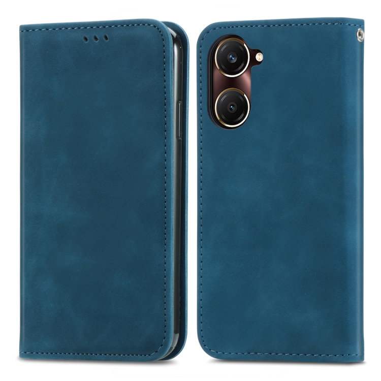 Funda de Cuero con Tapa Magnética y Tacto Retro para Vivo Y37 (Azul)