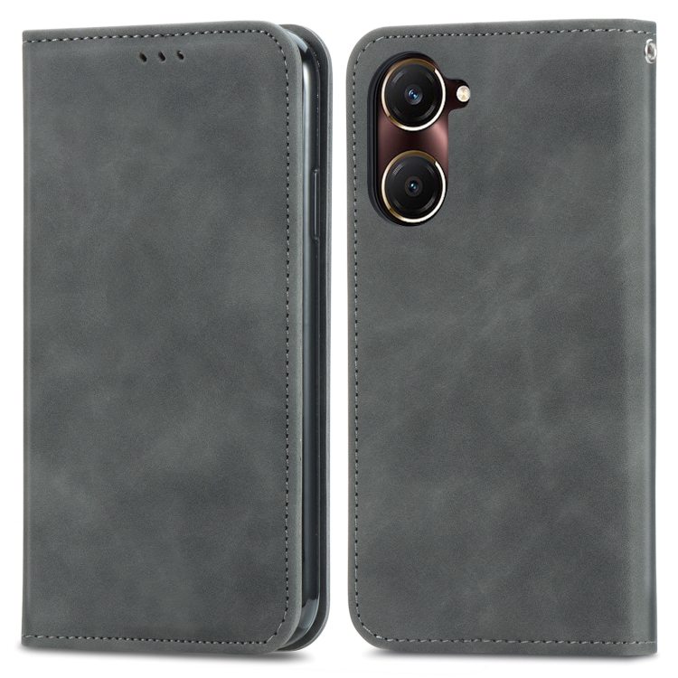 Funda de Cuero con Tapa Magnética y Tacto Retro para Vivo Y37 (Gris)