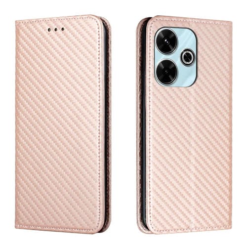 Funda de Cuero con Tapa Magnética y Textura de Fibra de Carbono para Xiaomi Redmi 13 4G (Oro Rosa)