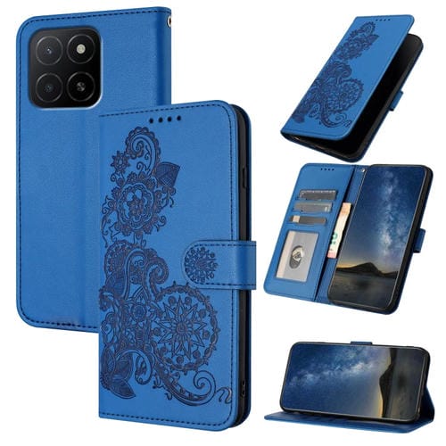Funda de Cuero con Tapa y Relieve Flor de Datura para Honor X5B/X5B Plus (Azul)