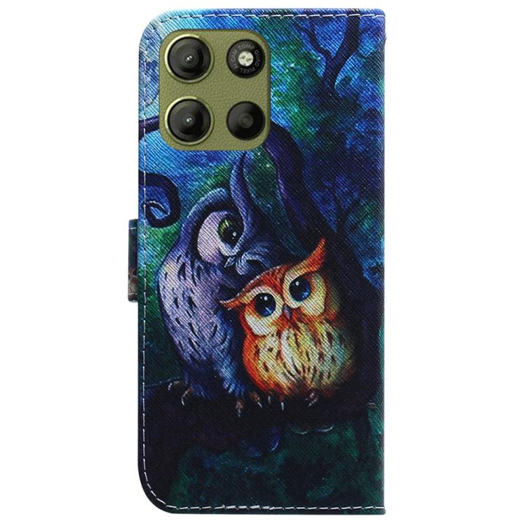 Funda de Cuero con Tapa Motorola Moto G15 Dibujo Búho Pintura al Óleo (Colorido)