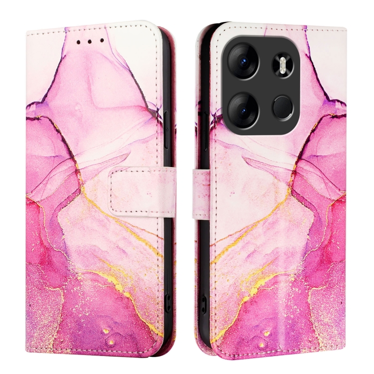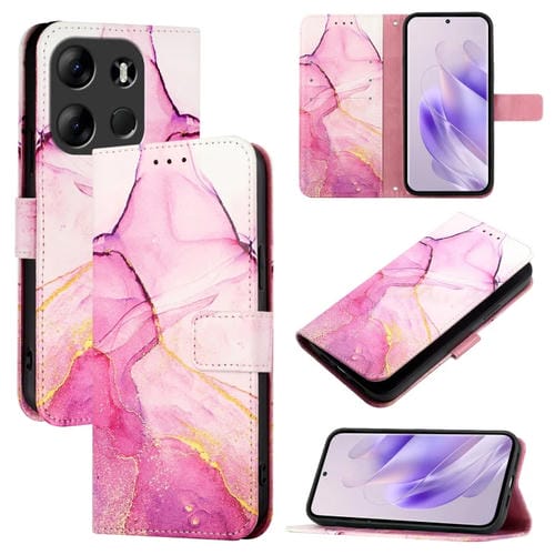 Funda de Cuero con Tapa para Teléfono Tecno Spark Go 2023 Pt003 Diseño Mármol (Rosa, Morado y Dorado)