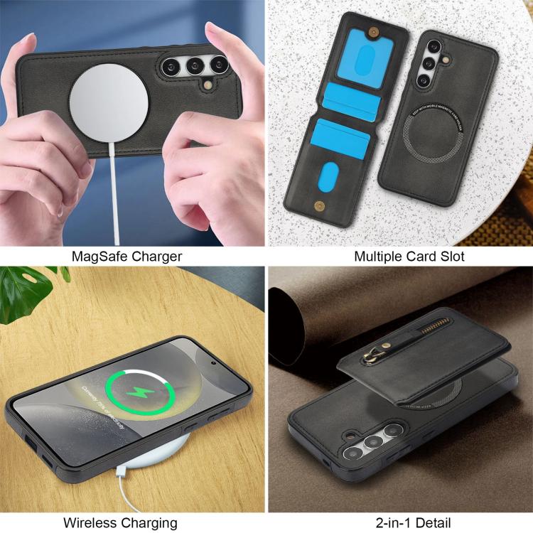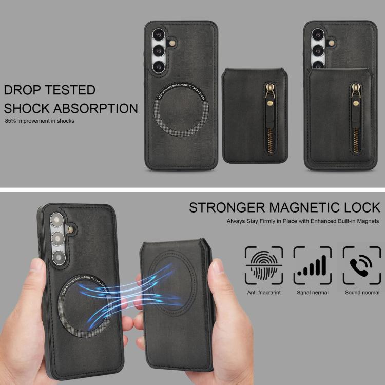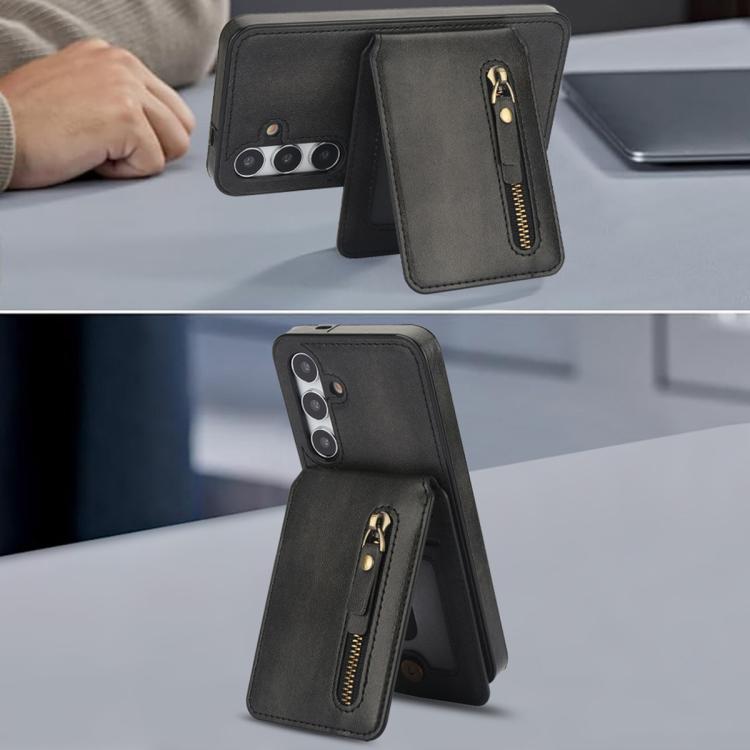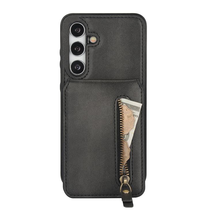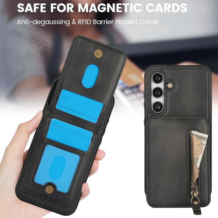 Funda Cuero Samsung Galaxy A55 5G Tapa Trasera Cremallera Ranuras Tarjetas (Negro)