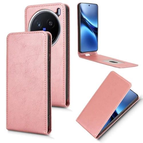 Funda de Cuero con Tapa Vertical Magnética para Teléfono Vivo X200 Pro 5G (Oro Rosa)
