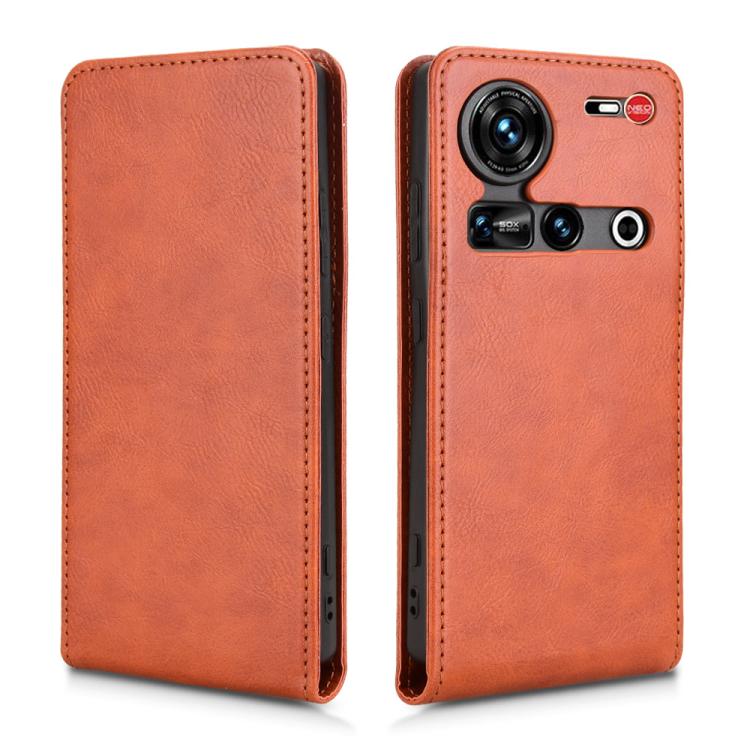 Funda de Cuero con Tapa Vertical Magnética para ZTE Nubia Z70 Ultra (Marrón)