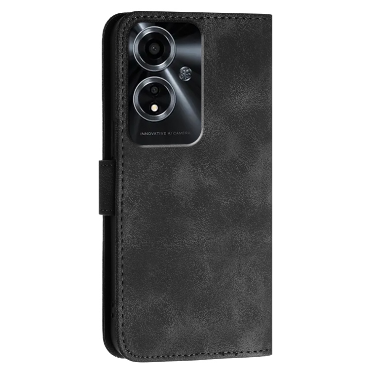 Funda de Cuero con Tapa y Cordón para Oppo A59 5G Yx0080 con Diseño En Relieve de Mariposa y Cuadrícula (Negro)