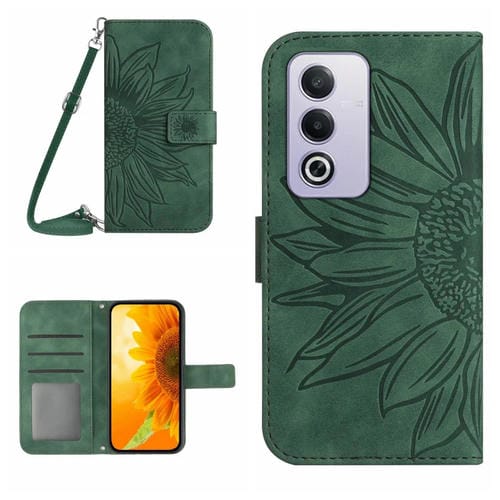 Funda de Cuero con Tapa y Cordón para Oppo A80 Eu/A3 Pro Global Skin Feel Sun Flower En Relieve (Verde)