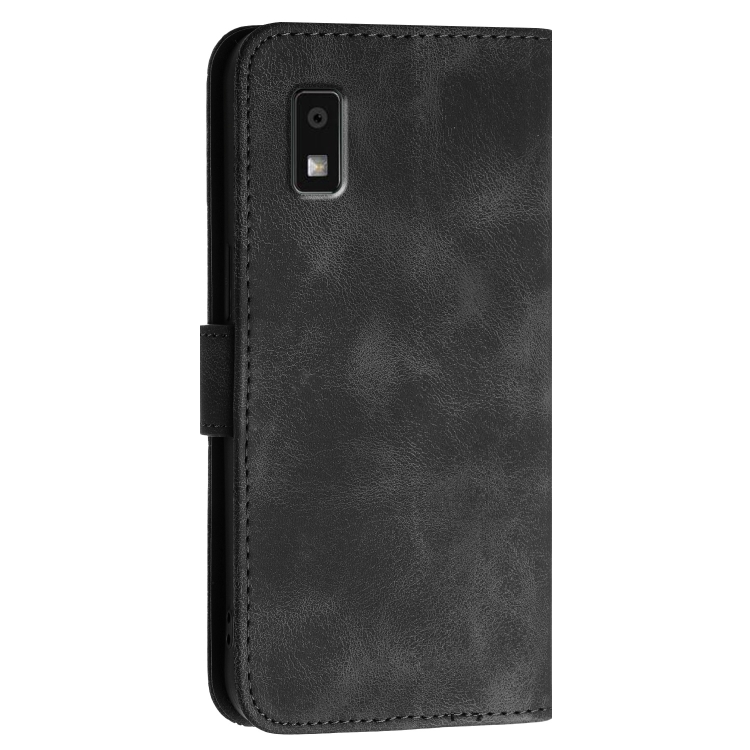 Funda de Cuero para Sharp Aquos Wish 3 Yx0080 con Tapa, Cordón y Diseño Relieve Mariposa (Negro)