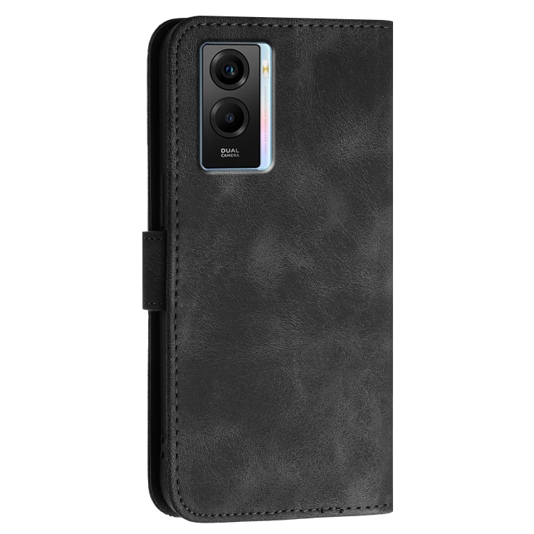 Funda de Cuero con Tapa y Cordón para Vivo T1 5G Global Yx0080 con Diseño En Relieve de Mariposa y Cuadrícula (Negro)