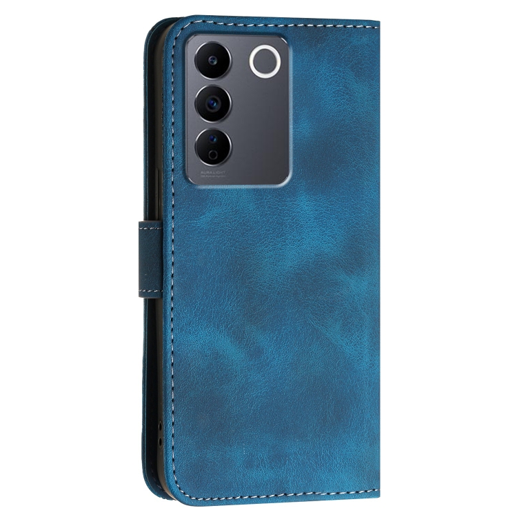 Funda de Cuero con Tapa y Cordón para Vivo T2 4G Global Yx0080 con Diseño En Relieve de Mariposa y Cuadrícula (Azul Oscuro)