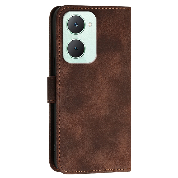 Funda de Cuero con Tapa y Cordón para Vivo Y03 4G Global Yx0080 con Diseño En Relieve de Mariposa y Cuadrícula (Café)