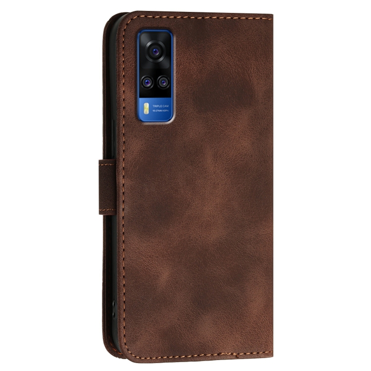 Funda de Cuero con Tapa y Cordón para Vivo Y53S 4G / Y51A / Y33 4G Yx0080 con Diseño En Relieve de Mariposa y Cuadrícula (Café)