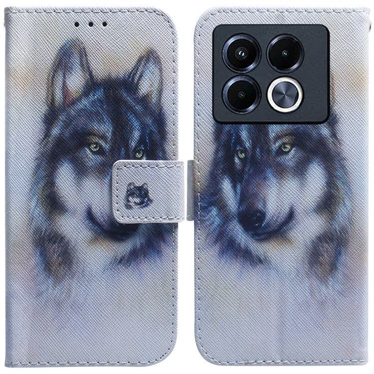 Funda de Cuero con Tapa y Dibujo a Color para Infinix Note 40 5G (Lobo Blanco)
