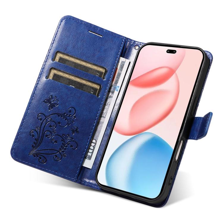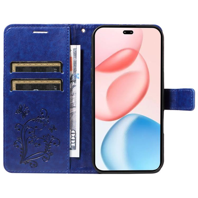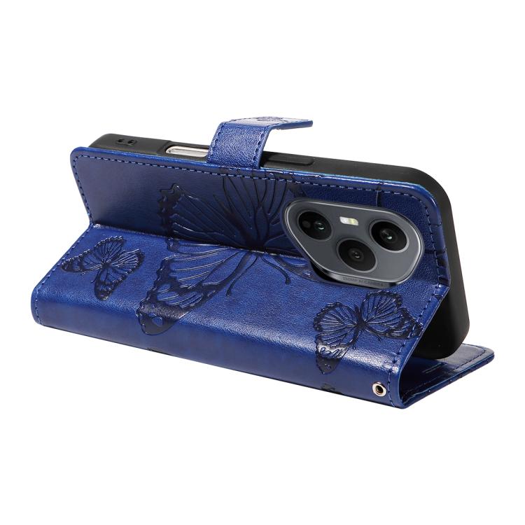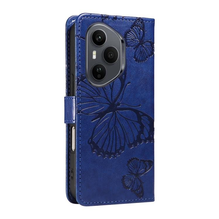 Funda de cuero con tapa y diseño de mariposa en relieve 3D para Honor 400 Pro Global (160,8 mm) (azul)