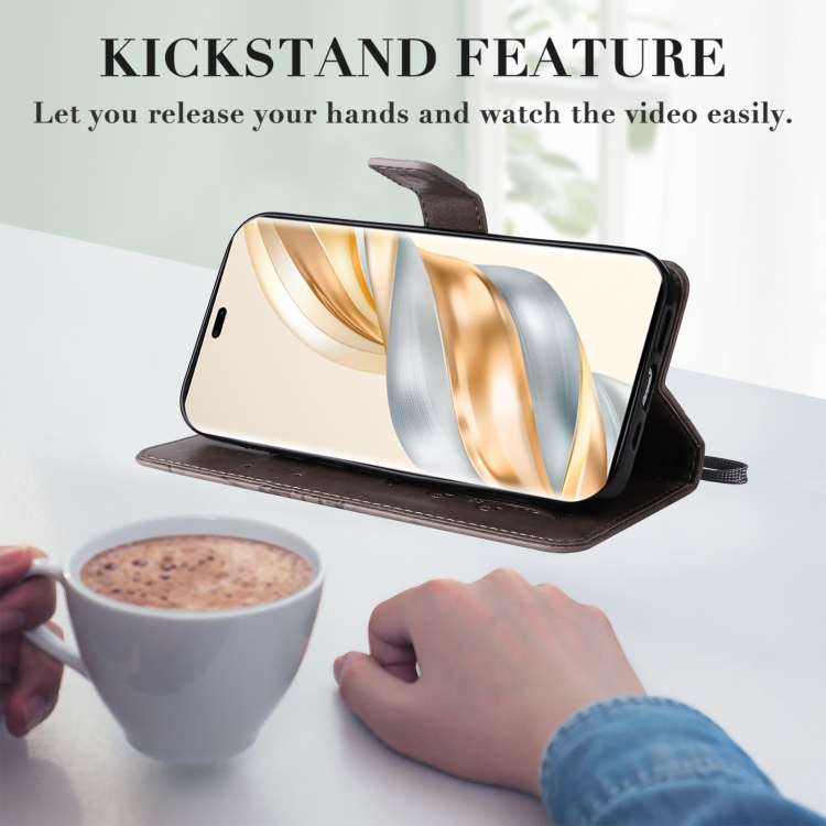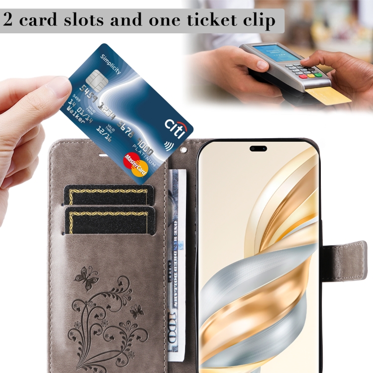 Funda de Cuero con Tapa y Mariposa en Relieve 3D para Honor X9C 5G Global (Gris)