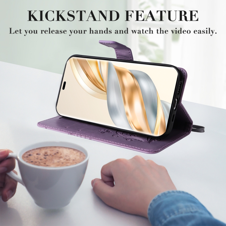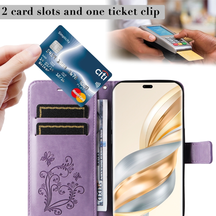 Funda de Cuero con Tapa y Mariposa en Relieve 3D para Honor X9C 5G Global (Morado)