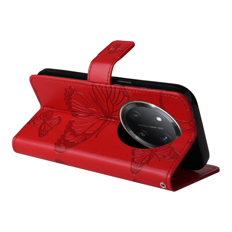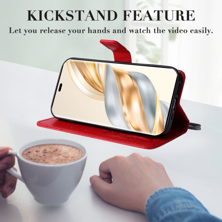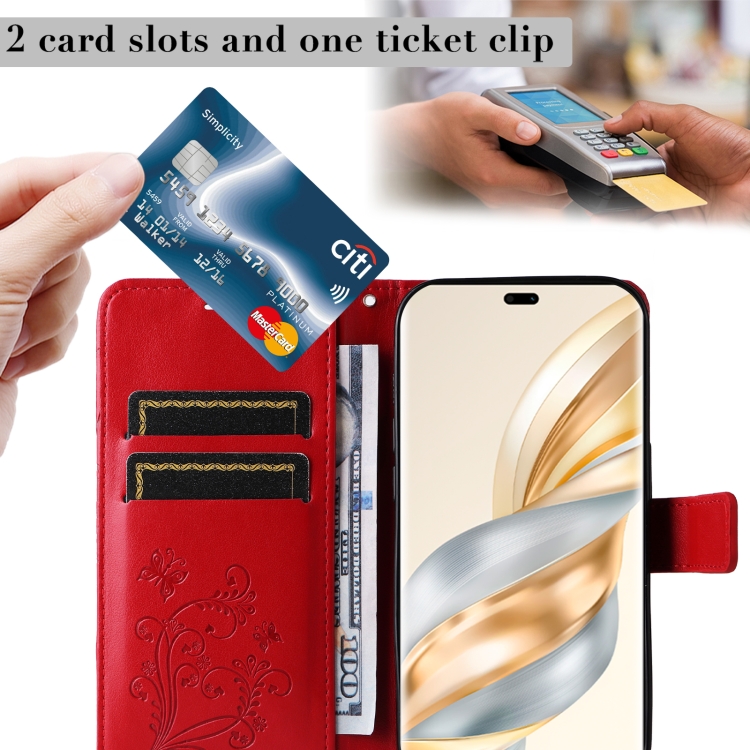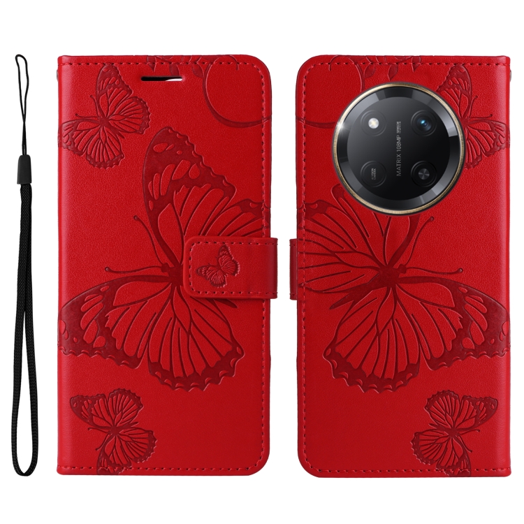 Funda de Cuero con Tapa y Mariposa en Relieve 3D para Honor X9C 5G Global (Rojo)