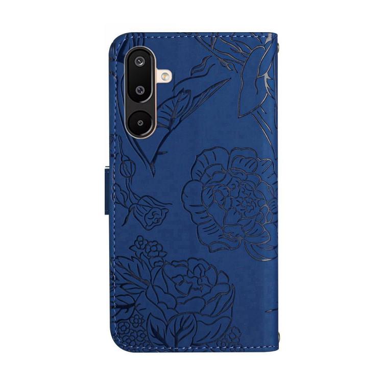 Funda de cuero con tapa y diseño de mariposas en relieve para Samsung Galaxy M36 5G (azul)
