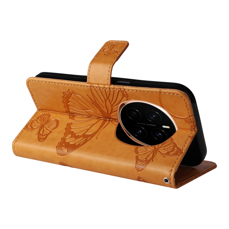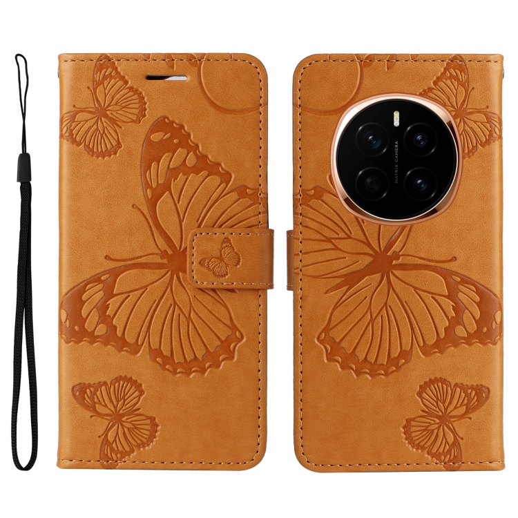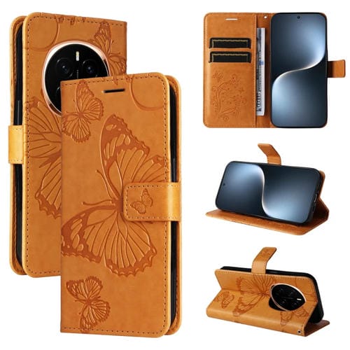 Funda de Cuero con Tapa y Diseño en Relieve Mariposa 3D para Honor Magic7 5G (Amarillo)