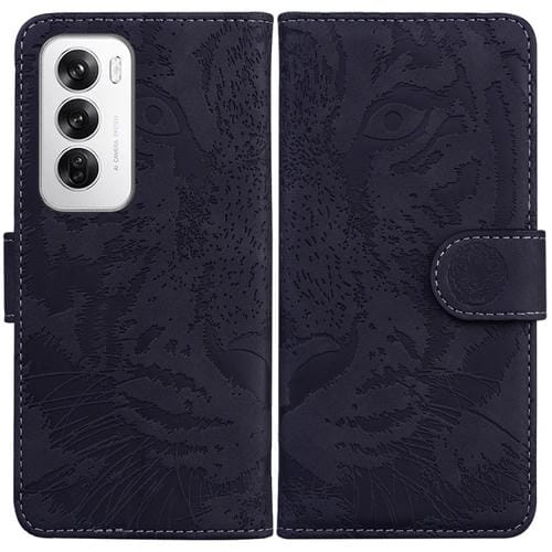 Funda de Cuero con Tapa y Estampado de Tigre para Oppo Reno12 5G Global (Negra)