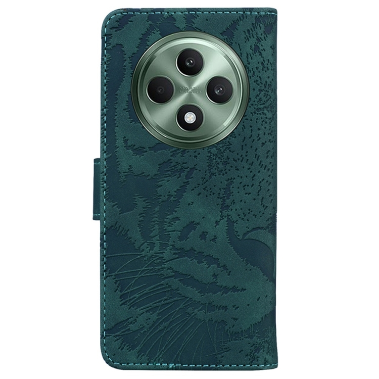 Funda de Cuero con Tapa y Estampado de Tigre para Oppo Reno12 F 5G (Verde)