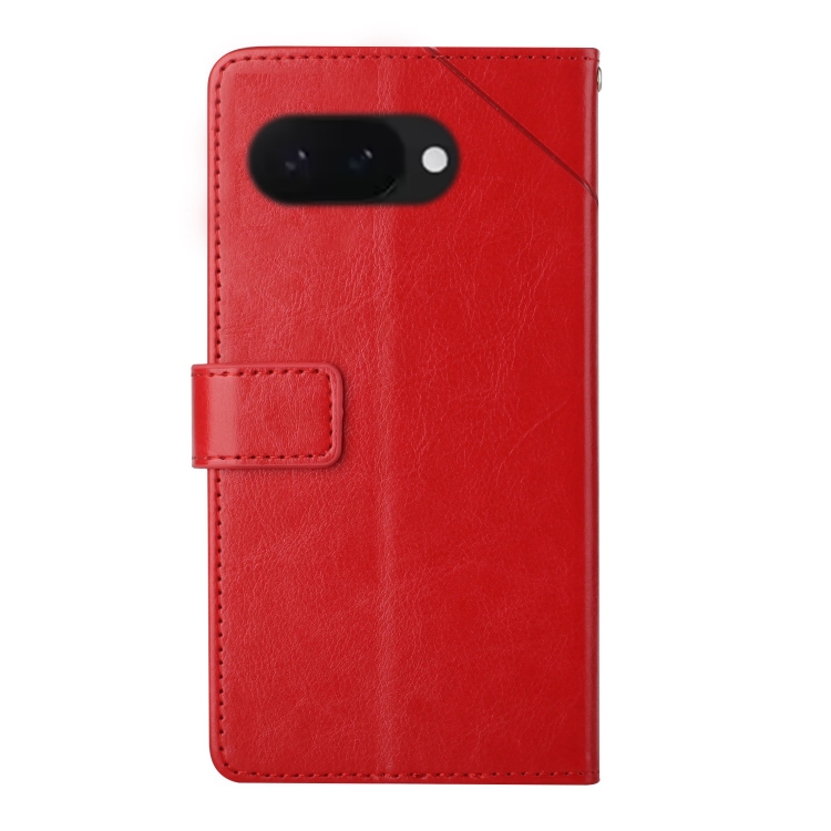 Funda de Cuero con Tapa y Patrón en Forma de Y para Google Pixel 9A (Rojo)